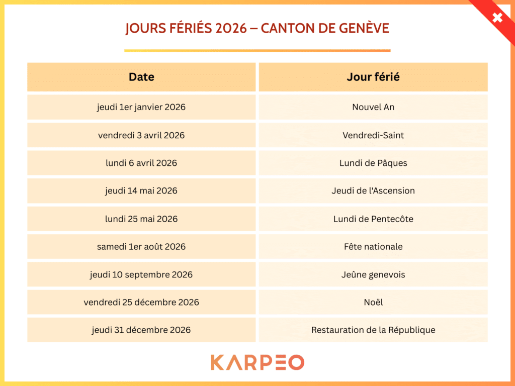 Jours fériés 2026 – canton de genève