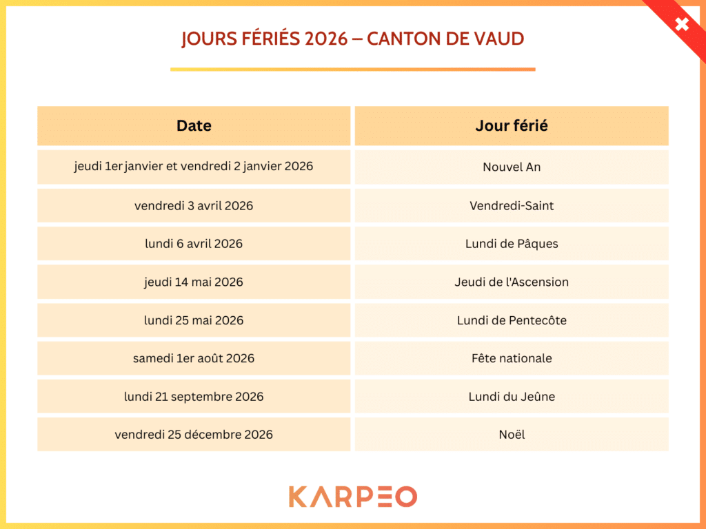 Jours fériés 2026 – canton de vaud