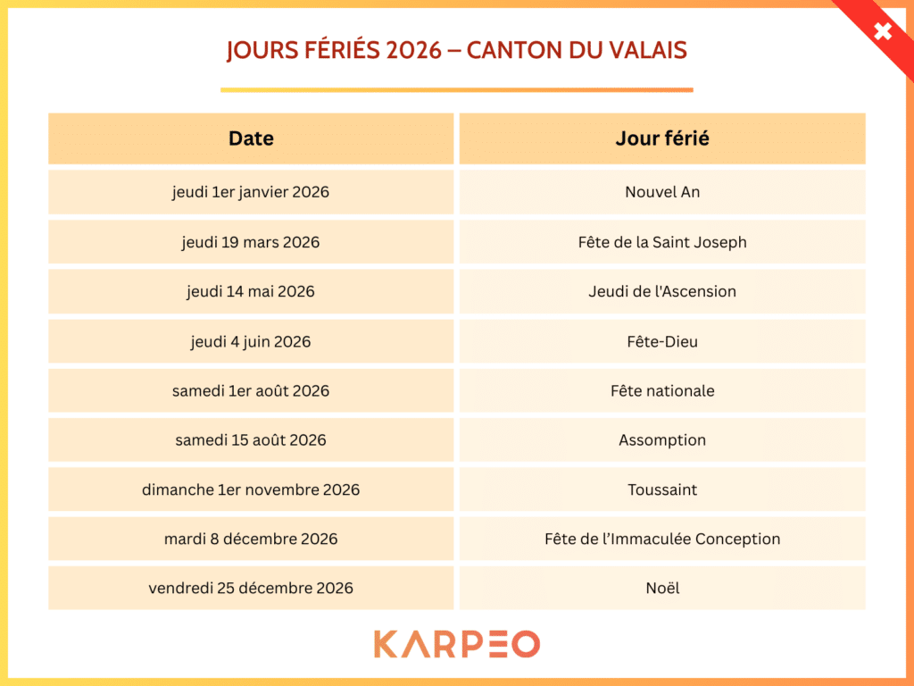 Jours fériés 2026 – canton du valais